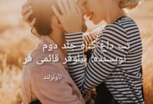 کل دنیا سراب است بخند… و در آخر اسم و فامیل و امضاش باعث شد بغض کنم ترانه بوران…پاییز ۱۳۹۵ یه روز عالی کنار خواهر عزیزم لبانم رو تر کردم و برای چندمین بار اون چند جملهای که به نظرم زیبا ترین جمله های دنیا میومد رو زمزمه کردم با صدای زنگ در دفتر خاطراتم رو بستم و زیر تخت گذاشتم. ..